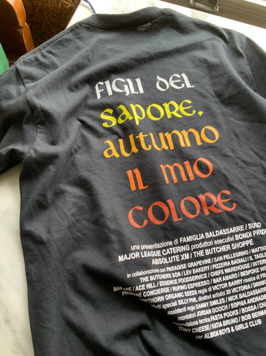 The 3rd Sagra Cast and Crew Tee. The colours of fall make up the motto of the sagra with the entire cast of sponsors and staff listed below. A Coppa Italia badge on the chest for good measure.