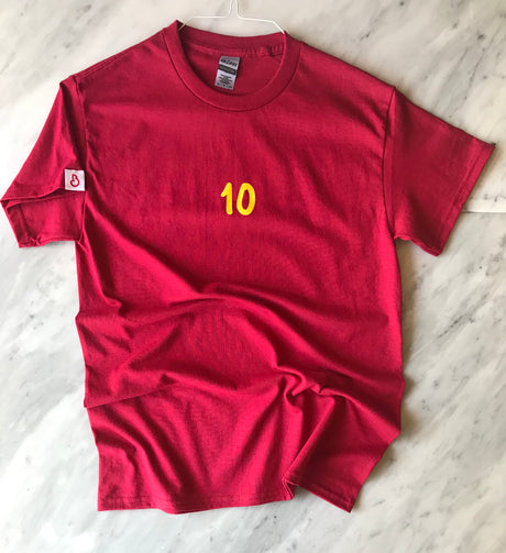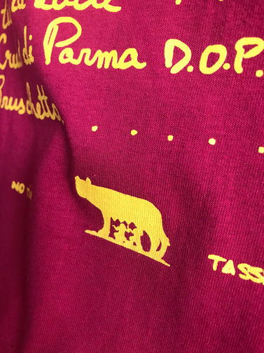 Un Capitaaaaanoooo! Our roman day menu tee features heavy cotton, an agro Curva Sud ultras font, an embroidered ‘B’ badge ( the red badge is extremely limited. Most will be black) and little silhouette of Romulo and Remo suckin’ on mama wolf’s teet. Oh and of course the iconic number ten of Francesco on the chest.